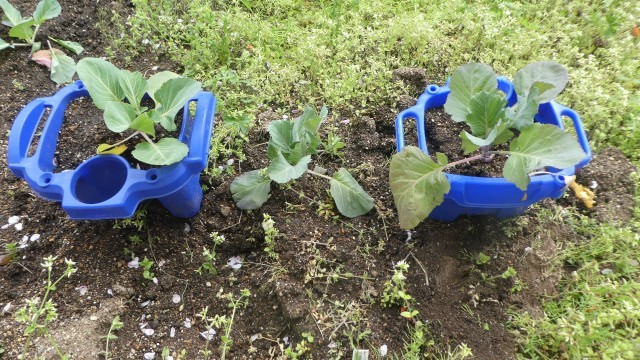 3年生のキャベツの苗には、もう、モンシロチョウがとまっていました。