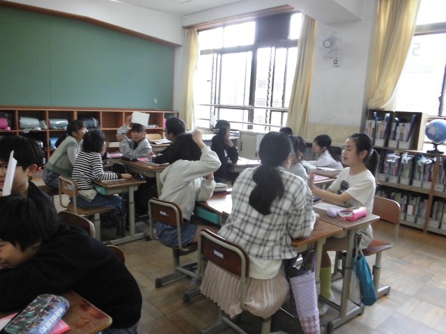 国語科「ひみつの言葉を引き出そう」では、気持ちや様子を表す言葉を書き、グループの人が自然とその言葉を口にするように会話をする学習をしました。