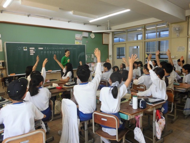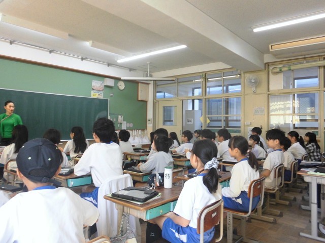 5年生になって初めての外国語科の学習がありました。クイズにグループで挑戦し大盛り上がりでした。