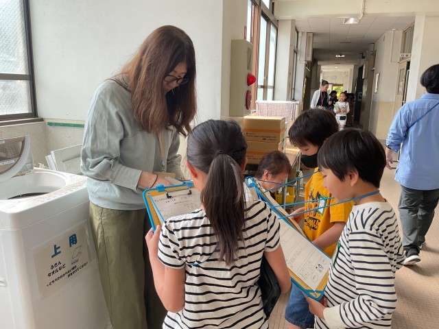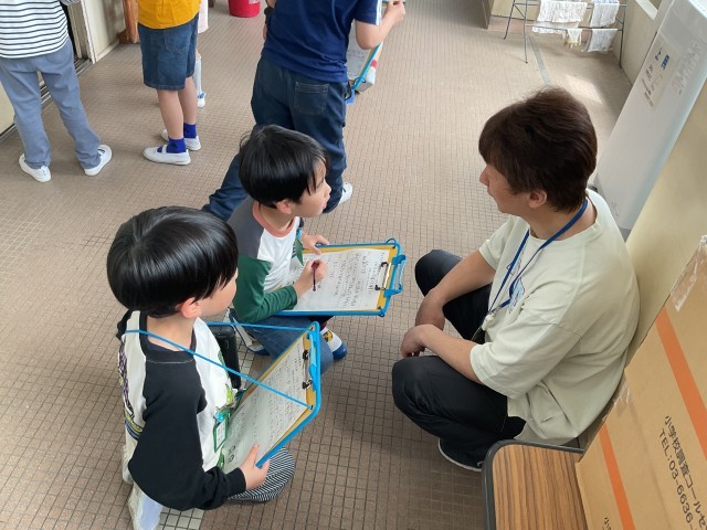 教室の説明を看板にするため、先生たちにインタビューをしています。