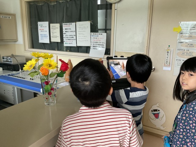 2年生もまだ入ったことのない教室もあります。放送室では、色々なボタンを発見。