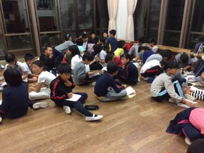 ナイトハイクが終わったあとは,1日の活動のふりかえりです。グループごとに,よくできたと思うことと,もっとこうしたらよかったということを交流した後に,リーダーからの発表がありました。子ども達は,新しい目標を設定して,動き出していました。