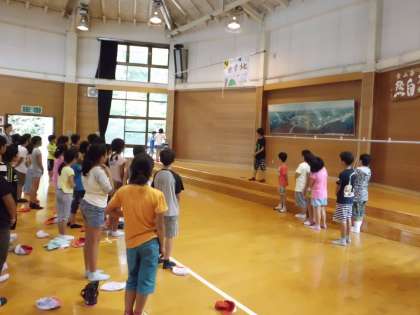 なかよし港に着いた後,少しでも早く,活動に入れるように,入所式はプレイホールで行いました。きれいで元気いっぱいのアカペラ校歌に,りりしい誓いの言葉,まさに一生懸命がカッコいいという岩倉北のキャッチコピーを姿で示すことができました。