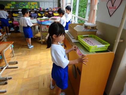 今日は自分のテープで長さを測りました。もちろんテープもグループで協力して作ります。