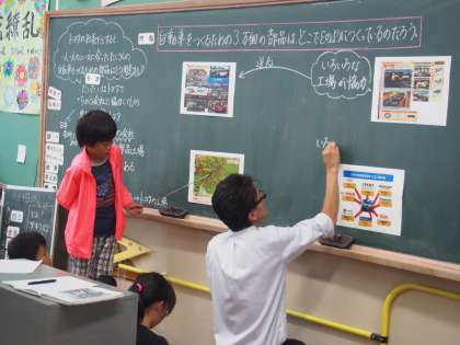 5年生は自動車の約3万個の部品をどのように作っているのかについて考える授業を行いました。