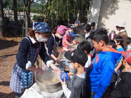 ハイキングから帰ってきた後は,おいしくて,体が温まるしし鍋がふるまわれました。里山ハイキングを終えた達成感と,心地よい疲労感とが合わさって,みなさんの笑顔があふれる時間となりました。