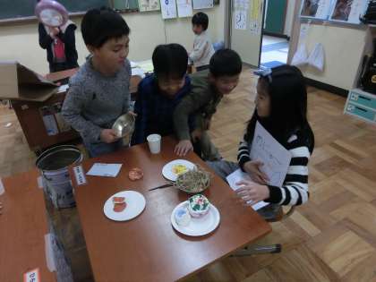 学習の中では,3くみレストランは閉店しましたが,先日まで給食交流に来てくれていた2年生をレストランに招待することにしました。早速2年生が来てくれ,一緒に楽しみました。すぐに子どもたち同士でやりとりを始め,とてもにぎやかなレストランになっています。