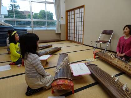 お箏経験者は少なく,はじめてお箏にふれる子どもたちばかりですが,みんな真剣に一回目の練習を終えました!!