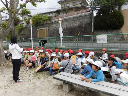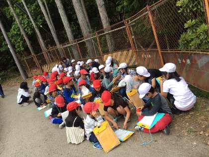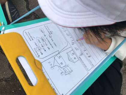 校区を三回に分けて探検し,白地図に書き込んだり,