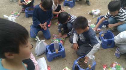 これから毎日水やりが始まります。早く芽が出て,ぐんぐん育ってほしいですね。