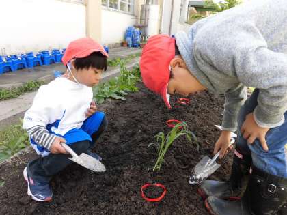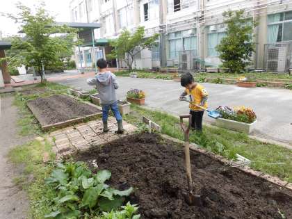二人とも土いじりが大好きで,土を耕すこともも苗と種を植えることもとっても上手でした。