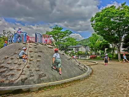 生活科の学習で地域の公園に遊びに行きました。友だちと仲良く遊ぶことや季節の動物や植物にふれあうことをめあてにいきました。天候にも恵まれ,気持ちの良い日差しや風を感じながら遊ぶことができました。友だちと誘い合ったり遊びを教え合ったりしながらニコニコ仲良く過ごすことができました。