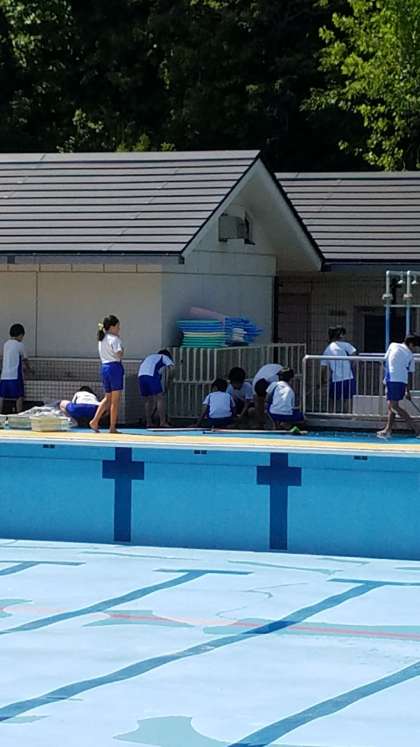 火曜日の掃除時間と5時間目にプール清掃を頑張りました。とてもいい天気の中,掃除の音楽を聴きながら