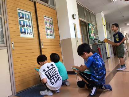 6/7(木),子どもたちが学校の中の記号を探しに行くと…