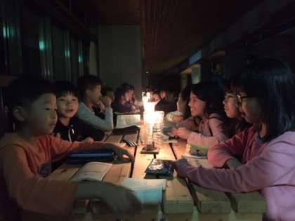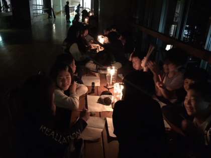 外は肌寒いため、ボンファイアーを取り止め、本館にてロウソクの灯りを照らしながら、振り返りを行いました。