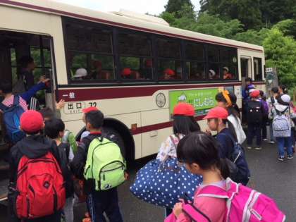 山の家を離れて、山村都市交流の森の翠峰荘にバスに乗って向かいます!