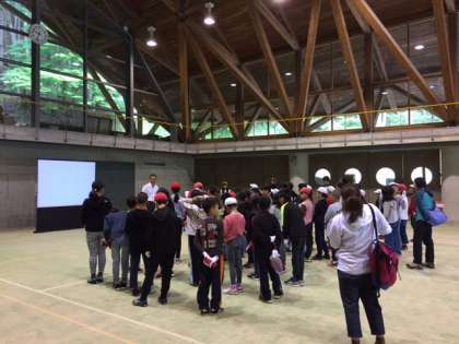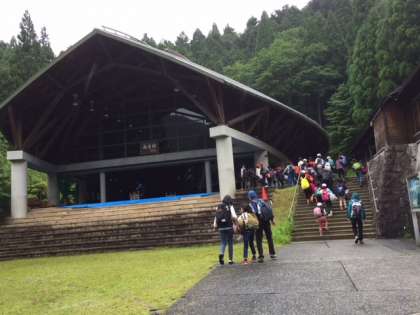 自然いっぱいの翠峰荘に到着です。入館式を行いました!あいさつが素敵です!