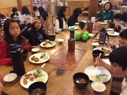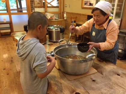 今日の夕食のメインは、花背の郷土料理でもある田舎のごった汁でした。とても美味しかったようで、たくさんおかわりしていました。