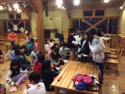ひとつひとつの活動を手際よく協力してできたおかげで、時間に余裕がてきました。そこで、松上げの鑑賞会の前に、先にふりかえりの会をすることにしました。今日1日の良かったところや明日に向けて改善したいところ、今日のMVPを交流して、明日につなげようとする姿が見られました。