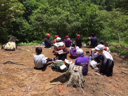 頂上に着きました!気持ちの良い景色を見ながら、美味しく昼ご飯です!天気も最高!!