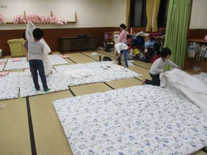 お風呂に入って,就寝の準備です。今日は男子がバンガローで,女子が90畳です。