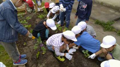 生活科『ぐんぐんそだて』の学習で,2年生で育てたい植物についてみんなで話し合ったことをもとに,今年育てる野菜が決定しました!今回,生活科の学習で選ばれし野菜はキュウリ・ナス・オクラ・枝豆・トウモロコシ・です。クラスでそれぞれの野菜を中心となって育てる野菜リーダーを決めて,苗や種を植えました。毎朝・夕欠かさず水やりをしたり,観察したりする姿が見られています。夏においしい野菜を収穫することをめざして,みんなでぐんぐん育てます!