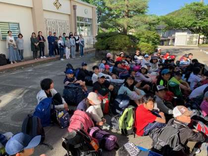 朝早くにもかかわらず、たくさんの保護者の方、地域の方のお見送り本当にありがとうございます!無事にバスに乗って、まずは京都駅に向かいます。