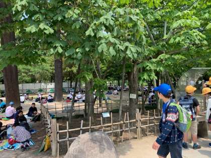 昼食後、平和記念公園をグループごとに散策しました。子供達は前もって調べて、見てみたいポイントをまわっていました。