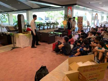 楽しい時間を過ごした宿舎を出発します。出発式で宿舎の方への感謝の気持ちを伝えて、倉敷美観地区へ出発です!