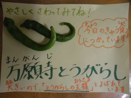 京野菜の1つの「万願寺とうがらし」を使いました。万願寺とうがらしは,その大きさから「とうがらしの王様」と呼ばれています。
