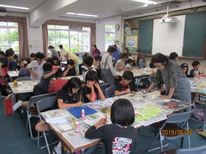 6月8日(土)に子ども手づくり教室が行われました。約50名の子ども達が参加し,ステンシルで世界に一つ,自分だけの作品づくりをしました。初めてチャレンジする子達は,はじめは少し戸惑う姿も見られましたが,地域の方に優しく丁寧に教えていただくことで,上手に作品づくりをすることができました。もう何度かしたことがある子達は,これまでの経験を生かして,自分のこだわりを大切にして,じっくりと作品づくりに没頭する姿も見られ,とても有意義な時間になったことと思います。