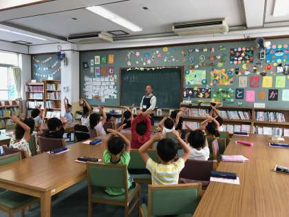国語科の学習で学校司書の先生に「スイミー」の学習に向けてブックトークをしてもらいました。レオ・レオニさんについての〇×クイズを楽しんだ後,「じぶんだけの色」という本を読み聞かせしてもらいました。今回読んでもらったのは,この1冊ですが,ほかにもレオ・レオ二さんが書いた絵本はたくさんあります。学校にもたくさんあるので是非手に取って読んでほしいと思います。また今回スイミーを訳された谷川俊太郎さんの詩も2つ教えてもらいました。なかなか馴染みのない「詩」ですが,どこか面白さを感じる詩の奥深さに子どもたちも夢中でした。