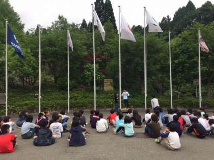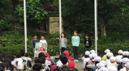 5校そろっての朝の集いでは、各校の素晴らしさを紹介しあいました。岩倉北の発表者もよくがんばっていました。