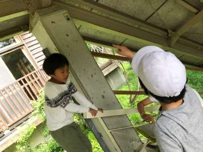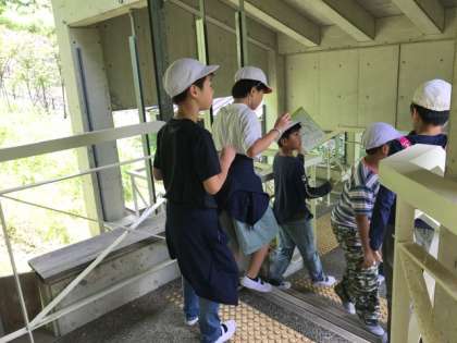 レクリエーション係がキャンプファイヤーの準備をしている間、館内ウォークラリーを楽しみました。