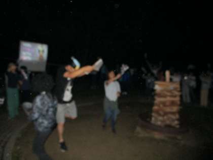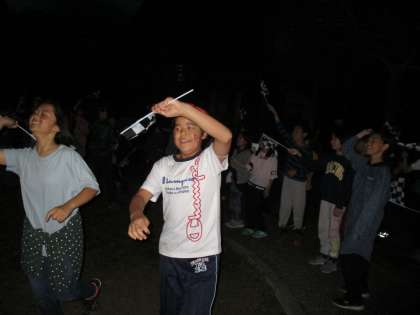 キャンプファイヤーがスタートしました。火の神様も登場し,会場全体が大盛り上がりです!
