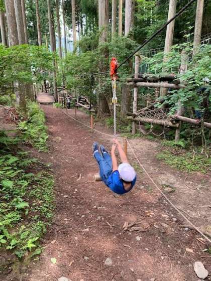 さすがに4泊分の片付けは大変だったらしく、少し手こずりましたが、なんとか時間内に朝食までとることができました!今はアスレチックを楽しんでます!