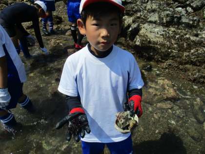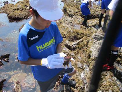 磯が広く続くので,1人1人が見つける生き物の種類や量がたくさんです!みんなとってもおもしろそうです!