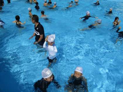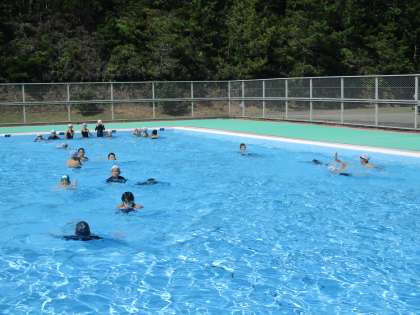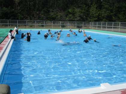 磯観察から帰った後は,プールに入って海水と汗を流しました。学校よりも少し広い大きなプールで気持ち良く泳ぎました!