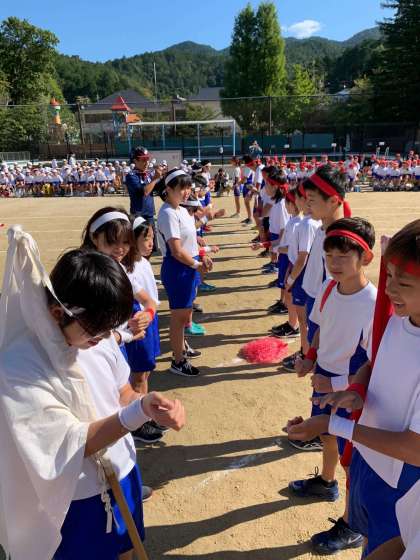 赤白共に健闘を祈り、お互いにエールを交換します!メッセージ入りのリストバンドも交換しました!