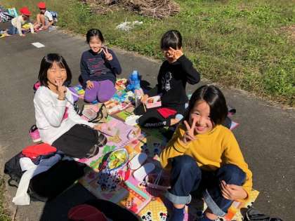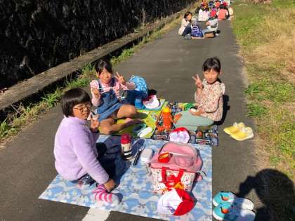 お家の方が作ってくださったお弁当をみんな笑顔で頬張っています。