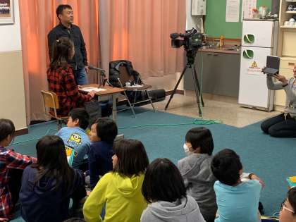 数名の児童が映像と合わせてアナウンスの原稿読みを行いました。