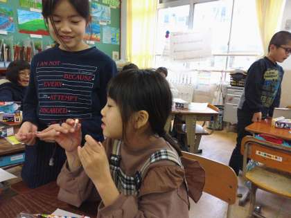 理科では,どのように豆電球と乾電池をつなぐといいのか考えています。