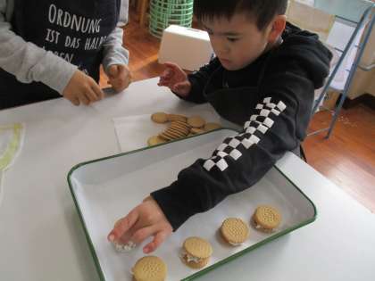 調理実習でマシュマロクッキーとはちみつクレープを作りました!