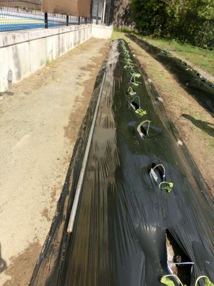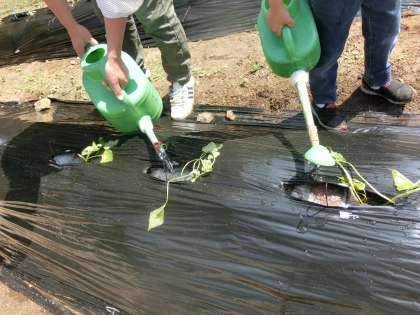 今日の朝の様子を見てみると,先生がじょうろをつかって水やりをしていました。何かが植えられていますねえ。