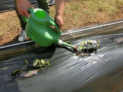 土がからからに ならないように 一つずつたっぷり水をやります。