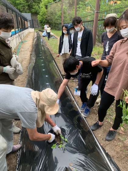 毎年,地域の安馬さんと田久保さんにお手伝いをいただいて,2年生がさつまいもを育てています。本当は,2年生が苗植えを行いますが,臨時休業ということもあり,安馬さんと田久保さんと教職員で,さつまいも畑をつくり,苗を植えました。その後,安馬さんと2年生の担任の先生が中心になってお水やりも続けています。