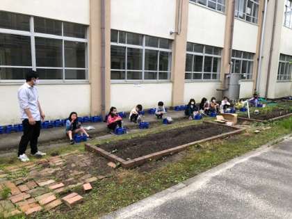 今日は,2年生の学習相談日です。2年生は,ミニトマトの種を植えました。