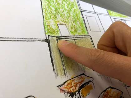 指でこすると,さらにすてきな色が生まれるよ。(1枚目の写真)