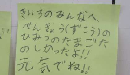 昨日の黄色グループのメッセージを見て早速お返事を書いていました。