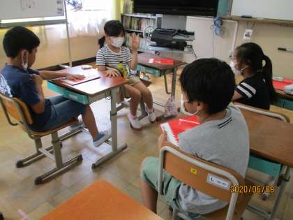 お家で練習した,スピーチをグループで交流し,